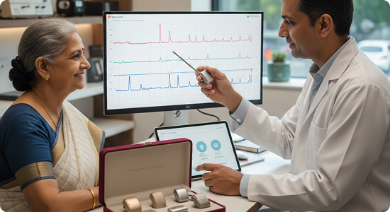 Personalized Recommendations: Suitable hearing aid options are presented based on your hearing loss pattern, lifestyle needs, and preferences, with features like noise reduction, directional microphones, and feedback cancellation explained clearly.